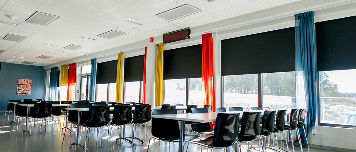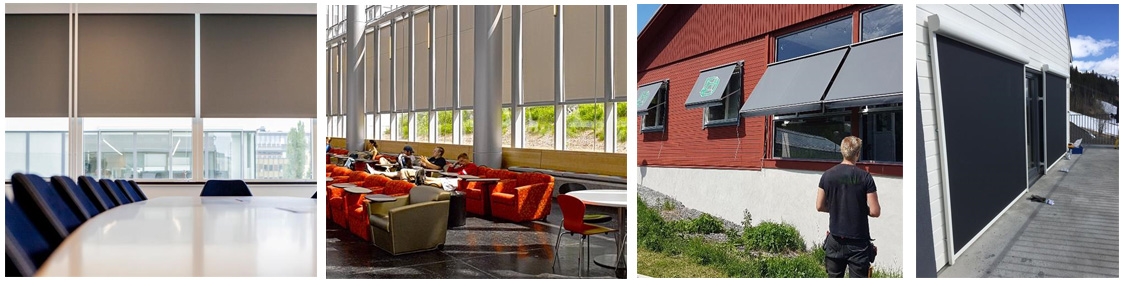 Vi säljer och installerar solskydd och mörkläggningsgardiner för kontor och offentlig miljö.