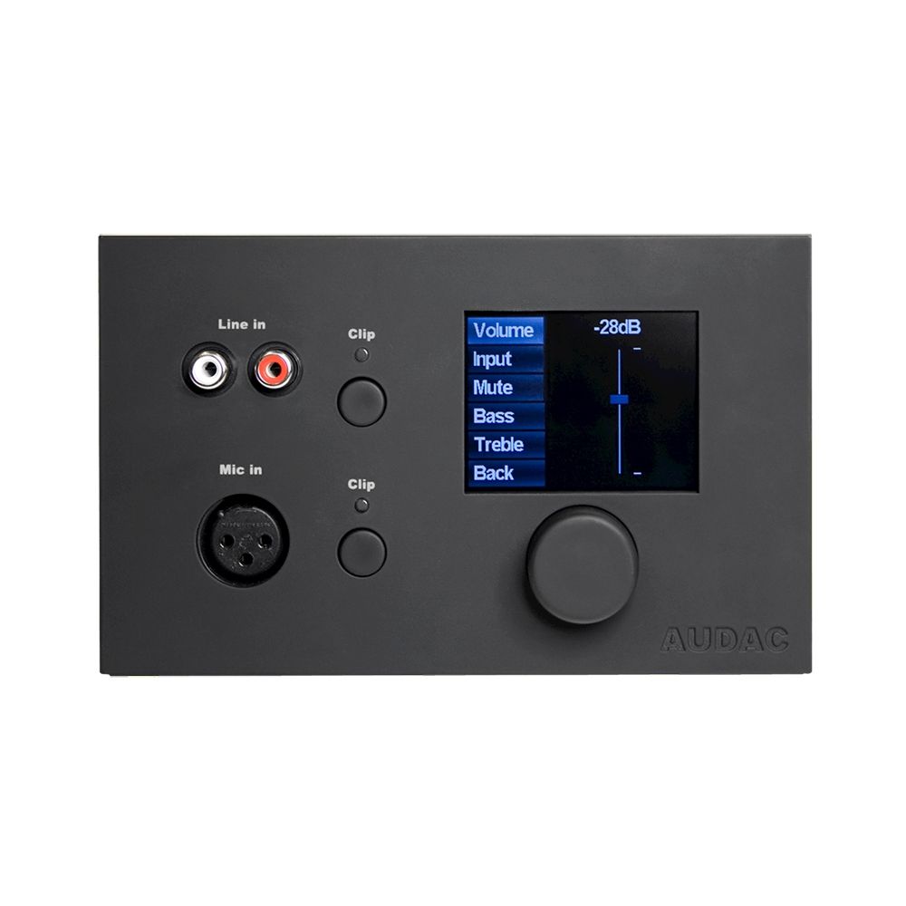 Audac MWX65/W är en väggpanel anpassad för Audacs audio matrix MTX48 och MTX88. Förutom standardfunktioner som val av ljudkälla samt volymreglering har MWX65/W också en lokal line & mik-ingång (som kan mixas) med individuell gain före volymkontroll. Volymkontroll samt val av ljudkälla sker via den roterande ratten med push-funktion, vilket ger ett enkelt och tydligt handhavande. Info visas i den integrerade 2,5" displayen. Den lokala balanserade XLR-ingången för mikrofon, har möjlighet till phantommatning (12V).