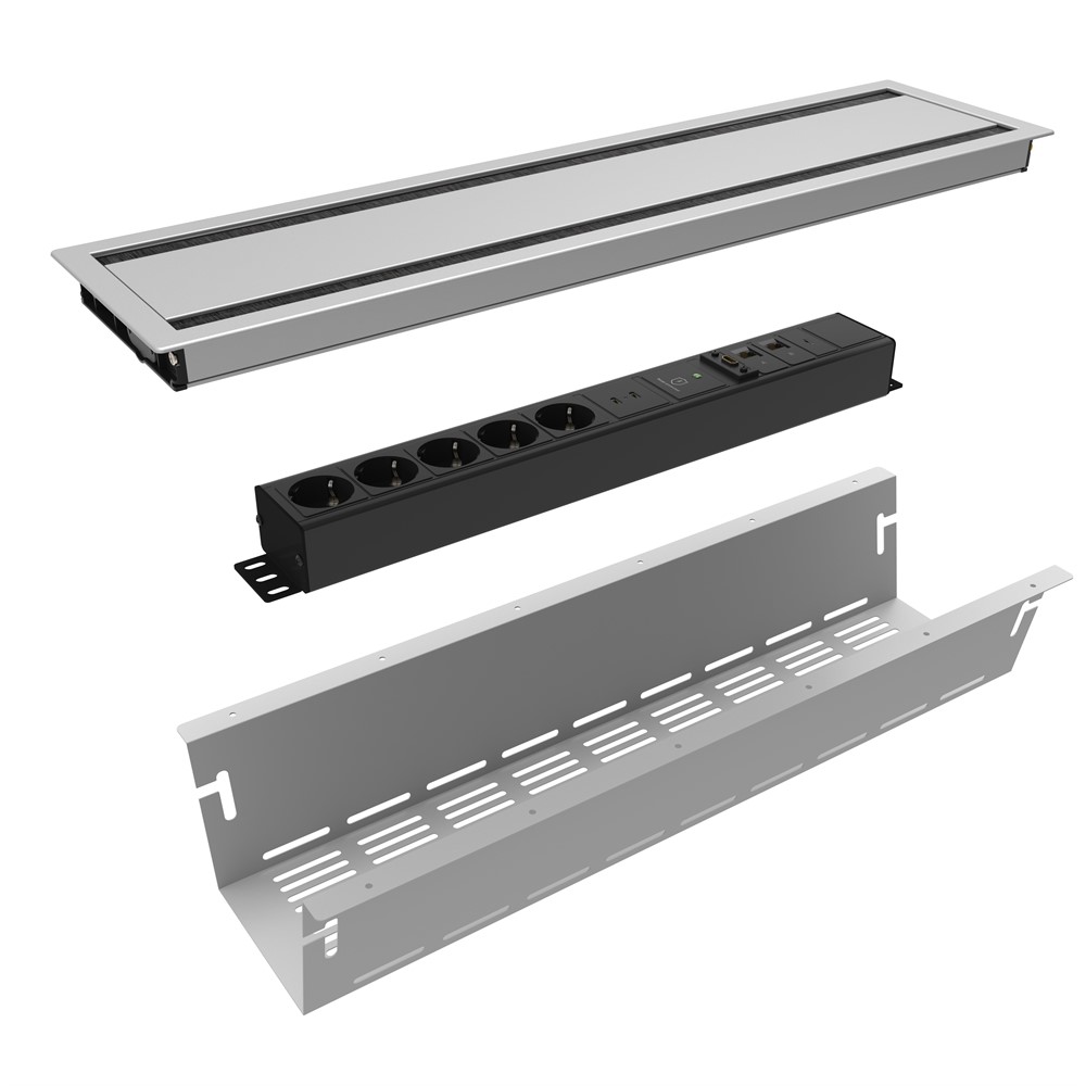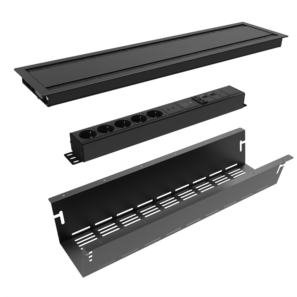 Komplett paket för en snygg och funktionell lösning till konferensbordet. Gör det enkelt med komplett Kit av produkter som kan installeras i bordet.