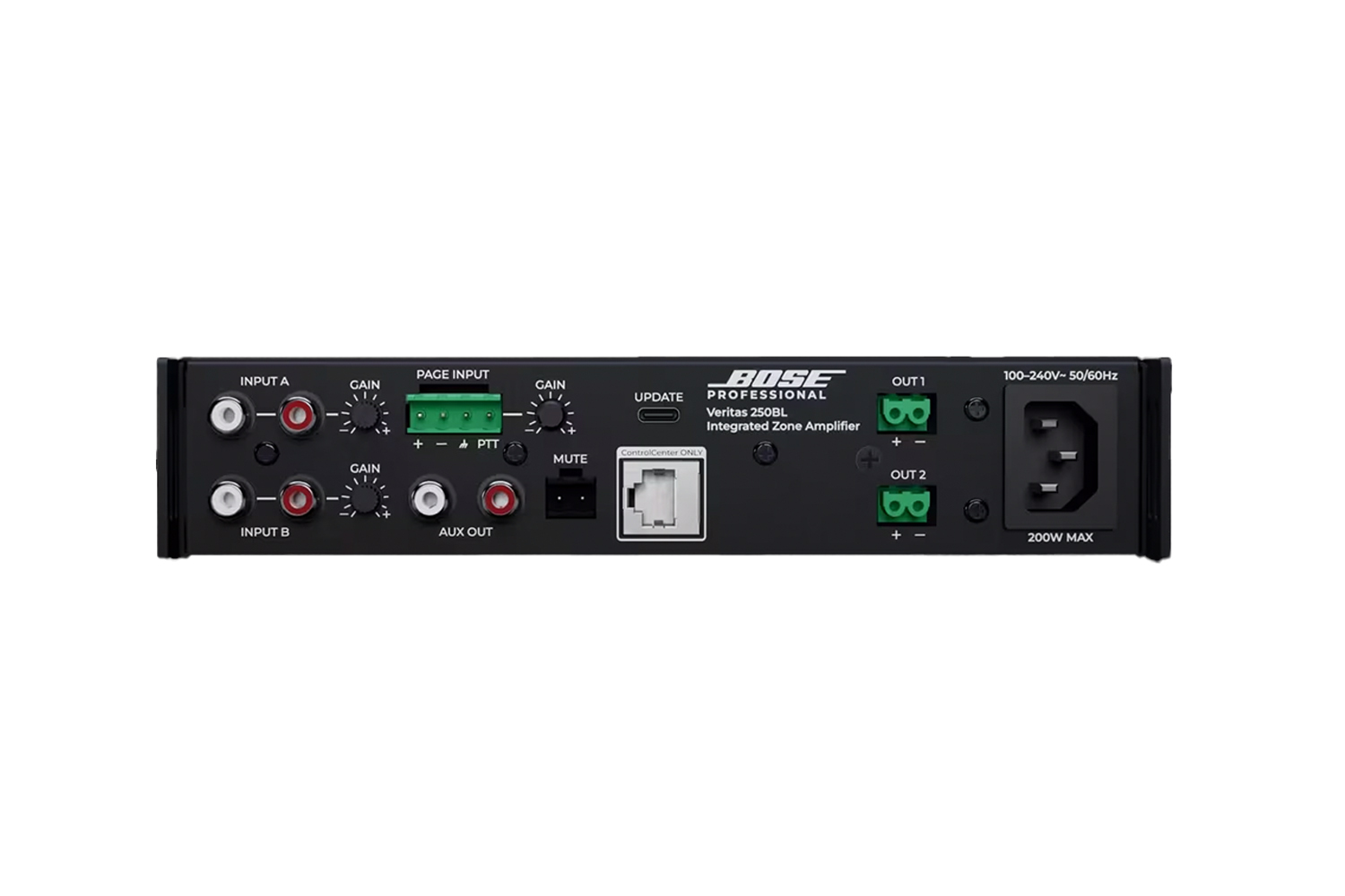 Upptäck Bose Veritas 250BL, en kompakt och kraftfull tvåkanals förstärkare framtagen för professionella ljudinstallationer i butiker, restauranger, hotell, kontor och konferensrum.
