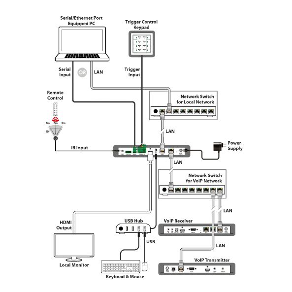 Med IP-7000-serien kan man konfigurera ett kundanpassat signaldistributionssystem via nätverk. 4K högupplöst video och ljud kan överföras via ett standard-nätverk på avstånd upp till 100m. Projektet avgör hur många ingångar (sändare / encoders) och utgångar (mottagare / decoders) systemet skall ha. Allt från en enda sändare till flera mottagare eller multipla sändare och multipla mottagare, möjligheterna är oändliga.