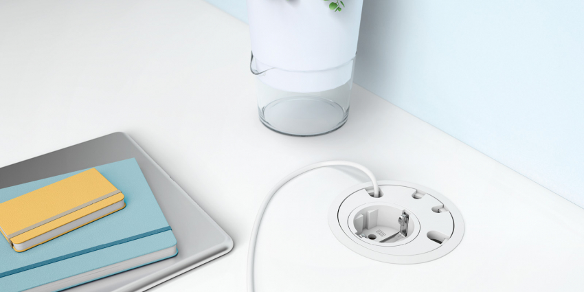 Insatsen monteras enkelt med en bajonettfunktion. Den har ett eluttag med två meter elkabel och fyra kabelpassager.