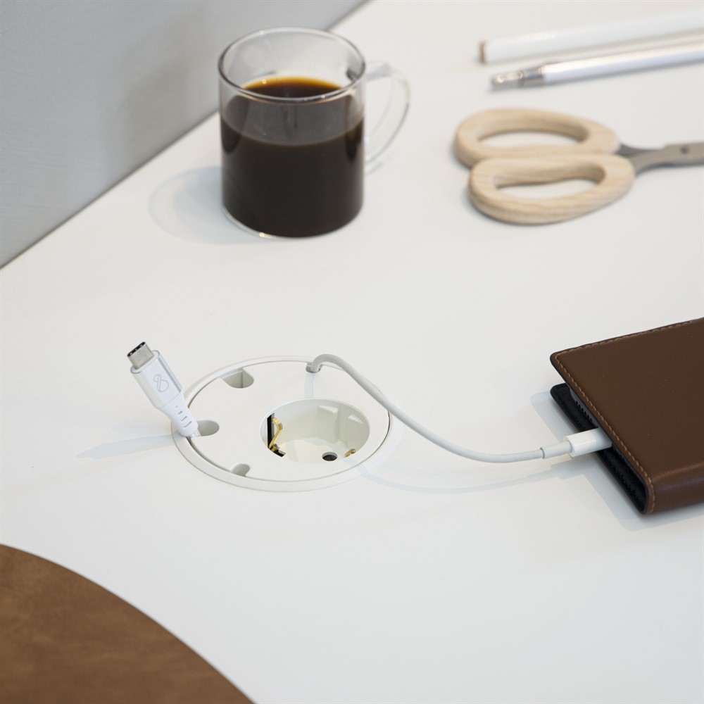 Med det integrerade bordsuttaget Powerdot har du tillgång till el, data och media på ett snyggt och enkelt sätt överallt. När du behöver den, där du behöver den. Powerdot knyter ihop rummet med stilren laddning på väntade – och oväntade – ställen. Möjligheterna är oändliga. Du bestämmer var och hur du vill vara ansluten.