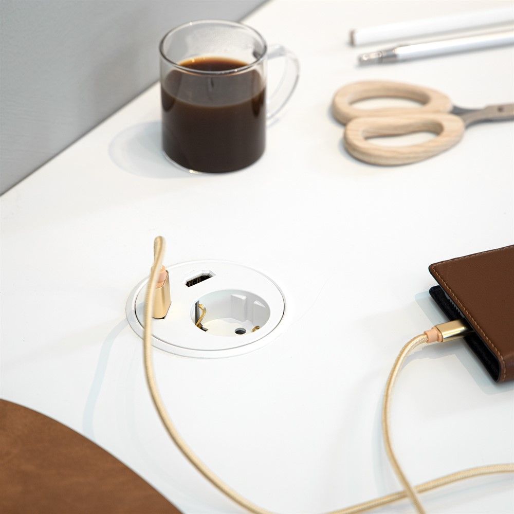 Med det integrerade bordsuttaget Powerdot har du tillgång till el, data och media på ett snyggt och enkelt sätt överallt. När du behöver den, där du behöver den. Powerdot knyter ihop rummet med stilren laddning på väntade – och oväntade – ställen. Möjligheterna är oändliga. Du bestämmer var och hur du vill vara ansluten.
