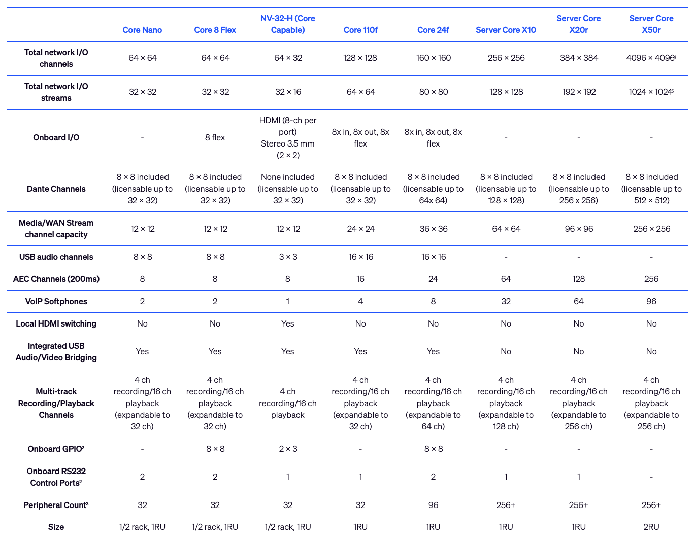 Med upp till 160 × 160 nätverkskanaler, 24 analoga I/O (inklusive 8 flexkanaler) och upp till 24 AEC-kanaler är Core 24f optimerad för mer krävande applikationer. Den ökade processorkraften gör den idealisk för moderna AV-miljöer med hög belastning.