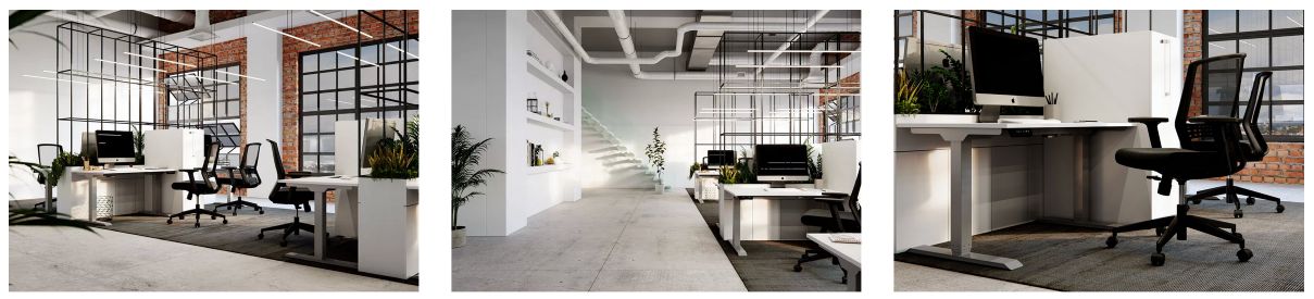 Stativet har en hastighet på 4cm/s och en slaglängd på hela 65 cm (62,5-127,5 cm) vilket ger användaren stor frihet att bestämma och programmera in sina positioner i minnet. Stativet kan även justeras i bredd vilket gör det möjligt att vara flexibel vid val av bordsskiva. Stativet har en stilren design med raka linjer vilket gör att skrivbordet passar in i alla typer av kontorslokaler. Benen på stativet är tillverkade med 3-delade fyrkantsrör. Stativet har sedan pulverlackerats med högsta noggrannhet. Lyftkapaciteten ligger på 100 kg vilket gör att användaren får plats med flera skärmar, dockstation, dokument mm. El-stativet väger 29 kg.